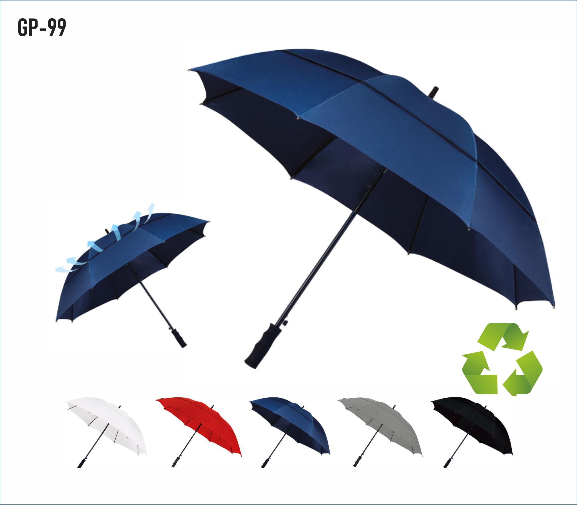 | Ekologiczny parasol golfowy automatycznie otwierany. Czasza parasola z systemem wentylacji wykonana z wysokiej jakości tkanuny pozyskiwanej z przetworzonych butelek PET. Wiatroodporny stelaż z włókna szklanego. Kij wykonany z włókna szklanego. Czarna, profilowana, gumowana rączka. Średnica: 120 cm Długość: 90 cm Pokrycie: ECO z przetworzonych butelek PET Rączka: prosta, profilowana Brytów: 8 |