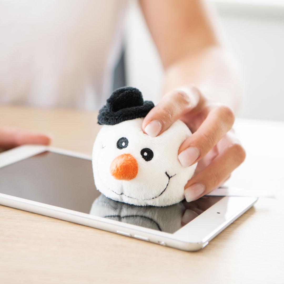 Bałwanek Schmoozies® z wszechstronnym spodem z mikrofibry. Małe, miękkie Schmoozies® z naszej serii MiniFeet® doskonale leżą w dłoni. Dzięki spodowi z mikrofibry są idealne do czyszczenia gładkich powierzchni, takich jak wyświetlacze telefonów komórkowych lub ekrany, a także są idealne do przytulania. Logo reklamowe można umieścić na wstążeczce przymocowanej do spodu produktu. Wymiary produktu: 8,50*7,00*7,50 cm Materiał: poliester, mikrofibra od spodu, wypełnienie włókna poliestrowe i granulki PET