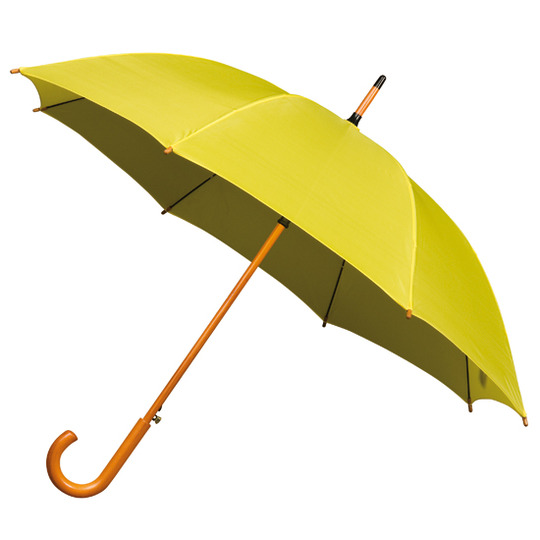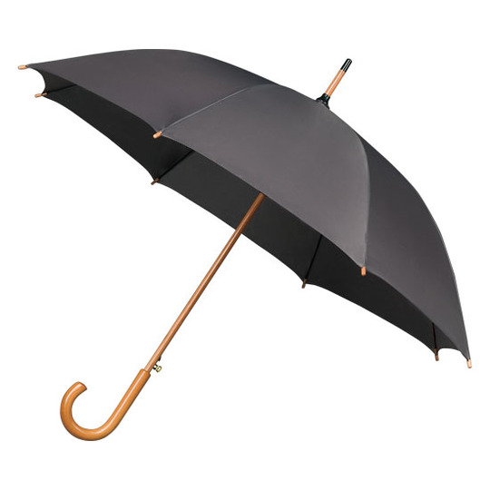 Długi parasol automatycznie otwierany. Drewniany kij. Drewniana zakrzywiona rączka. Drewniane kolce na zakończeniach brytów. Drewniane elementy mogą posiadać przebarwienia co wynika z jego naturalnych właściwości i nie stanowi podstawy do reklamacji. Metalowy stelaż. Średnica: 102 cm Długość: 89 cm Rączka: drewniana zagięta Brytów: 8