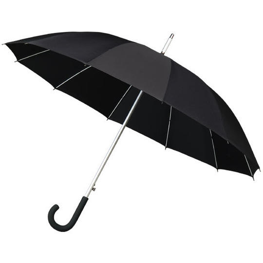 Długi parasol automatycznie otwierany Aluminiowy kij i szpic Stelaż metalowy z długimi żebrami z włókna szklanego Parasol posiada pokrowiec Średnica: 110 cm Długość: 91 cm Waga: 0,591 kg Pokrycie: poliester pongee Rączka: zagięta, plastikowa gumowana w kolorze czarnym Brytów: 12 Zawartość opakowania: 20 szt. |