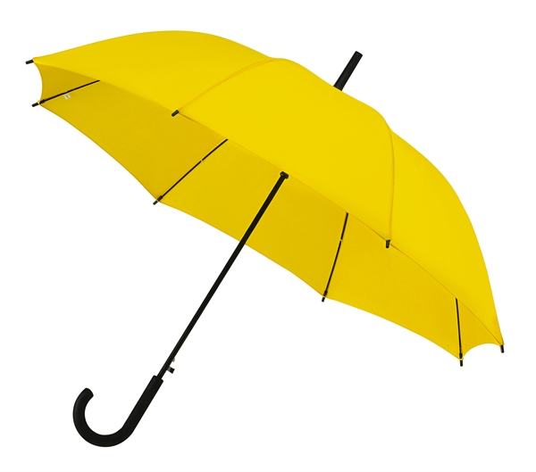 Długi parasol automatycznie otwierany Stalowy kij w kolorze czarnym. Wiatroodporny stelaż z włókna szklanego w kolorze czarnym. Plastikowe czarne kolce, szpic i rączka Średnica: 103 cm Długość: 85 cm Pokrycie: poliester Rączka: plastikowa, zagięta Brytów: 8 |