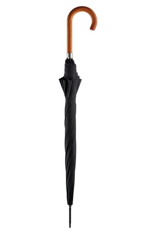 Parasol o właściwościach wiatroodpornych. Stelaż o właściwościach wiatroodpornych wykonany z metalu i elementów z włókna szklanego. Wygodna funkcja szybkiego, automatycznego, otwierania. Większa odporność na korozję dzięki galwanizacji kija. Podpalana, drewniana, zagięta rączka z metalowym pierścieniem z możliwością wykonania graweru laserowego. Drewniane elementy mogą posiadać przebarwienia co wynika z jego naturalnych właściwości i nie stanowi podstawy do reklamacji. Podwyższona ochrona przed korozją dzięki galwanizowaniu kija parasola na kolor czarny. Parasol automatyczny 10 mm stalowy kij. Kolorystyka: biały, czerwony, bordowy, zielony, euroblue, granatowy, szary, czarny