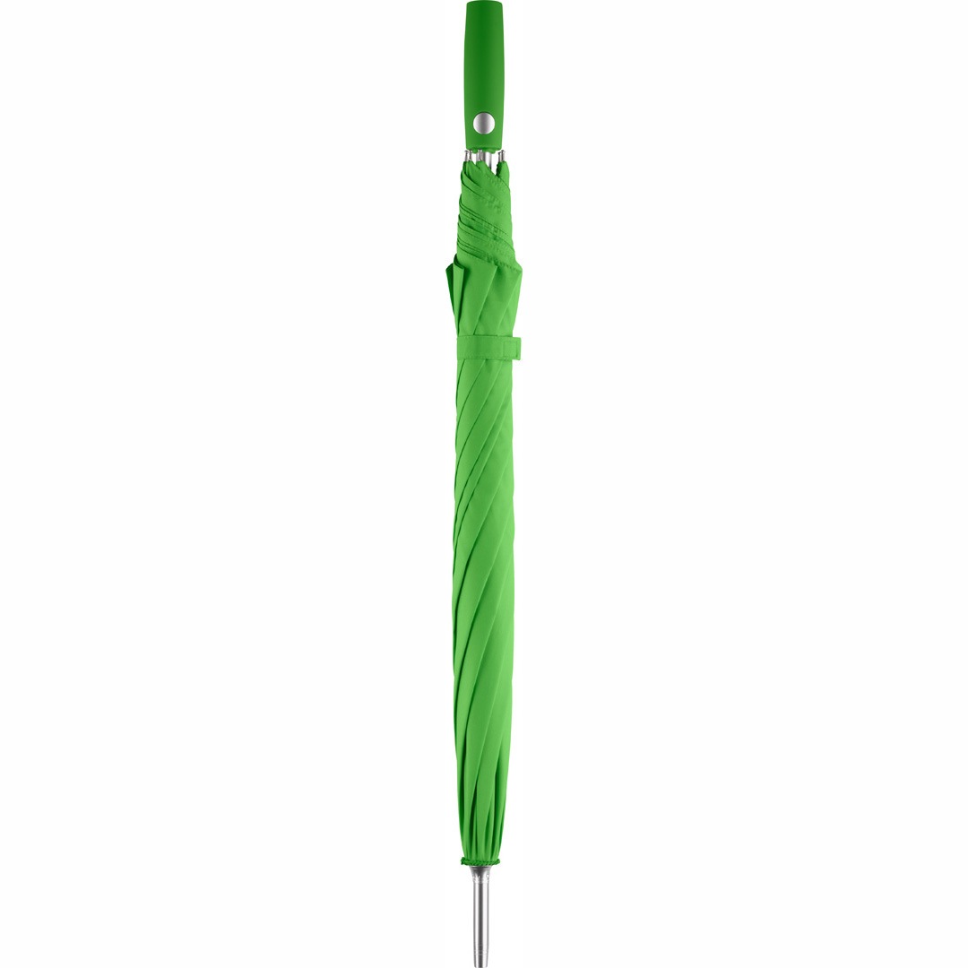Lekki, aluminiowy kij. Wygodna funkcja szybkiego, automatycznego otwierania. Wysokiej jakości wiatroodporny stelaż z elastycznego włókna szklanego sprawia, że parasol może wytrzymać gwałtowne podmuchy wiatru. W ekstremalnych sytuacjach wietrznych czasza wywija się na lewą stronę ale żebra nie pękają i nie zginają się. Zgrabna, przyjemna w dotyku, powlekana rączka dopasowana kolorystycznie do czaszy parasola z płaskim przyciskiem otwierania i możliwością personalizacji - możliwość wklejenia domingu. 14 mm aluminiowy kij. Posiada certyfikat LABTECH. Kolorystyka: biały, czerwony, jasny zielony, euroblue, granatowy, szary, czarny