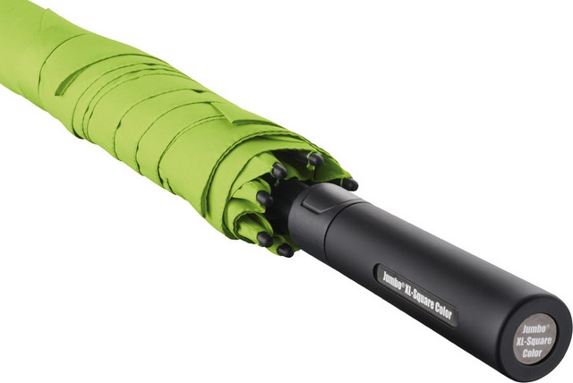 Kwadratowy parasol dla dwóch osób Kto lubi zostawiać swoich towarzyszy na deszczu po dobrym posiłku lub miłym wieczorze? Ty nie – a już na pewno nie ten duży automatyczny FARE® Jumbo® Golf XL Square! Dzięki średnicy 113 cm oferuje miejsce dla 2 osób za naciśnięciem jednego przycisku. Kwadratowy kształt jest nie tylko zaskakujący wizualnie, ale także okazuje się całkiem praktyczny. Najpóźniej na drugi rzut oka kolorowy kij przyciąga całą uwagę. Idealnie skoordynowane – jak wszystko, co przygotowujesz dla swoich gości.