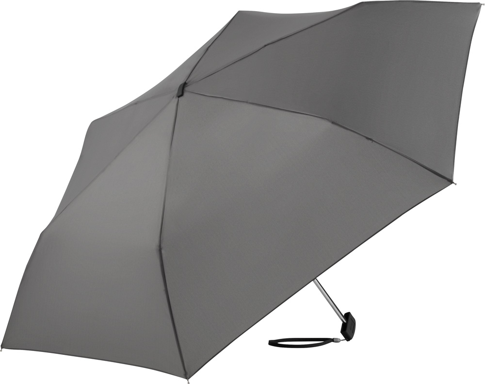Oszczędność miejsca. Ekstra płaskie wykonanie. Łatwe w obsłudze otwieranie dzięki bezpiecznemu suwakowi. Wysokiej jakości wiatroodporny stelaż z elastycznego włókna szklanego sprawia, że parasol może wytrzymać gwałtowne podmuchy wiatru. W ekstremalnych sytuacjach wietrznych czasza wywija się na lewą stronę ale żebra nie pękają i nie zginają się. Płaska i przyjemna w dotyku rączka z opcją znakowania promocyjnego. Czasza wykonana z extra lekkiego poliestru. Kolorystyka: lime, granatowy, szary, czarny