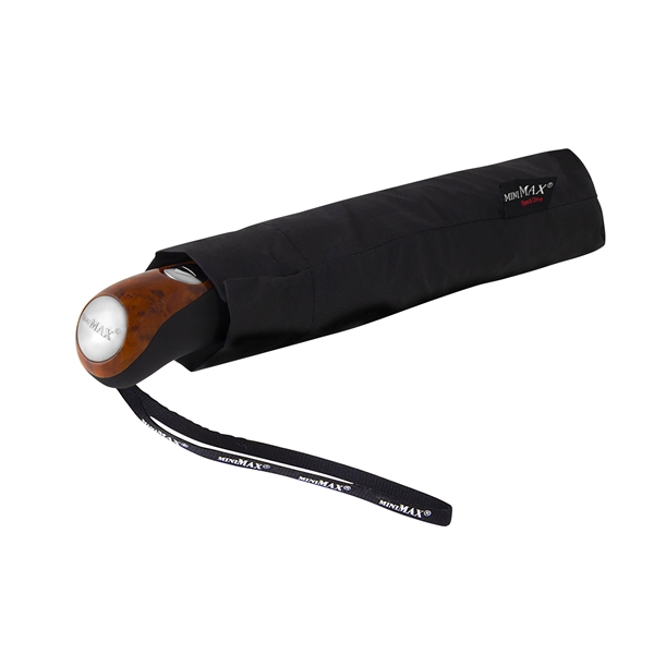 Krótki parasol automatycznie otwierany i zamykany. 3 razy składany. 8 brytów. Wiatroodporny stelaż Z włókna syklanego. Rączka gumowana z lakowaną wstawką imitującą drewno Średnica: 100 cm Długość: 30 cm Materiał: poliester pongee Rączka: ekskluzywna, gumowana z wstawką imitującą rdewno Brytów: 8 Sztuk w kartonie: 60