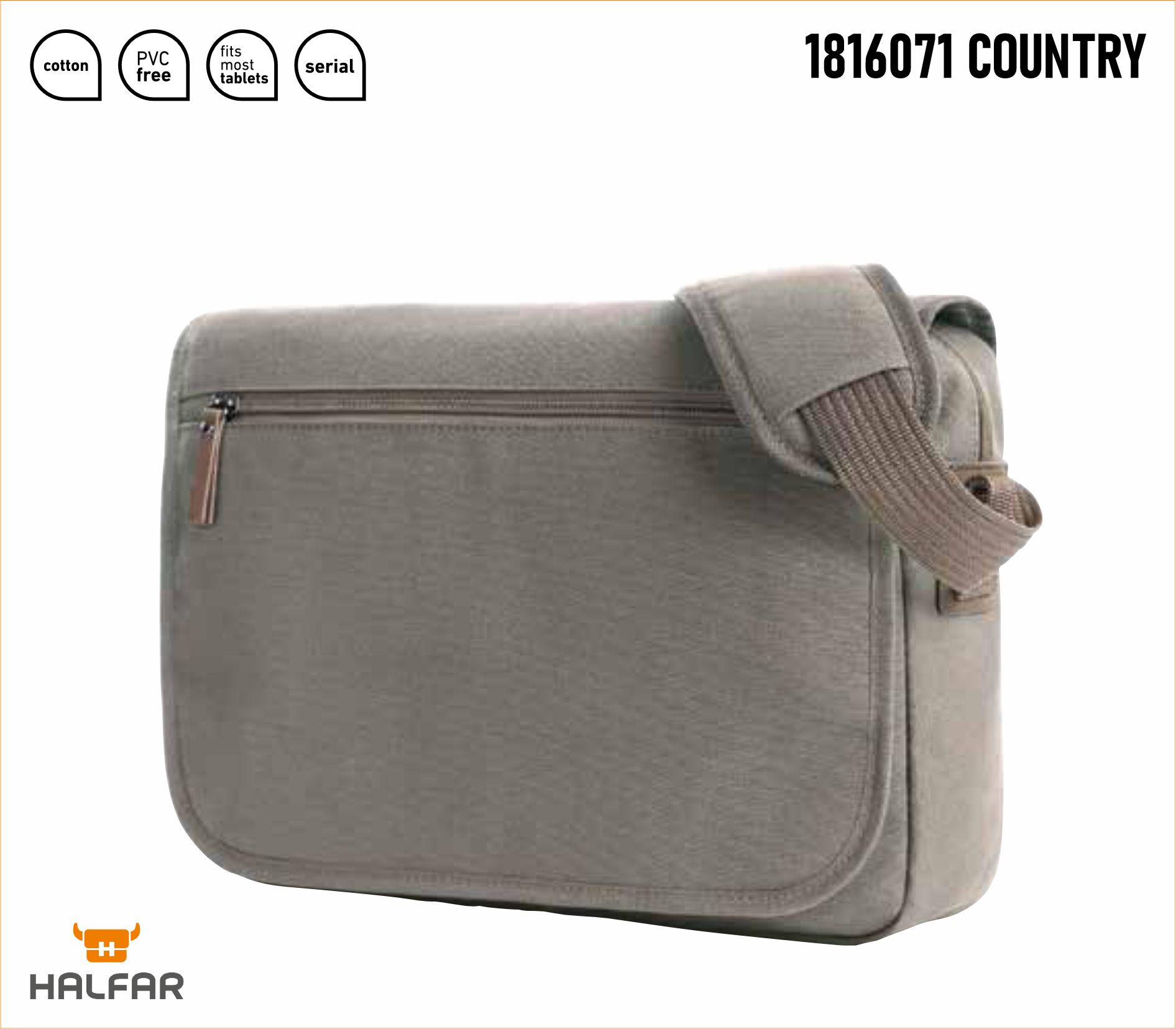 Torba na ramię z dużą klapą jest pomocnym towarzyszem na uniwersytecie, w biurze lub w czasie wolnym. Mieszczą się w niej dokumenty A4 oraz tablet. Różne wyściełane przegrody. Klapa jest zamykana na zatrzask. Torbę można go łatwo otworzyć jedną ręką odsłaniając zapinaną na zamek główną komorę i kieszeń. Torba ma niepowtarzalny charakter dzięki bawełnianej fakturze materiału w naturalnych kolorach.