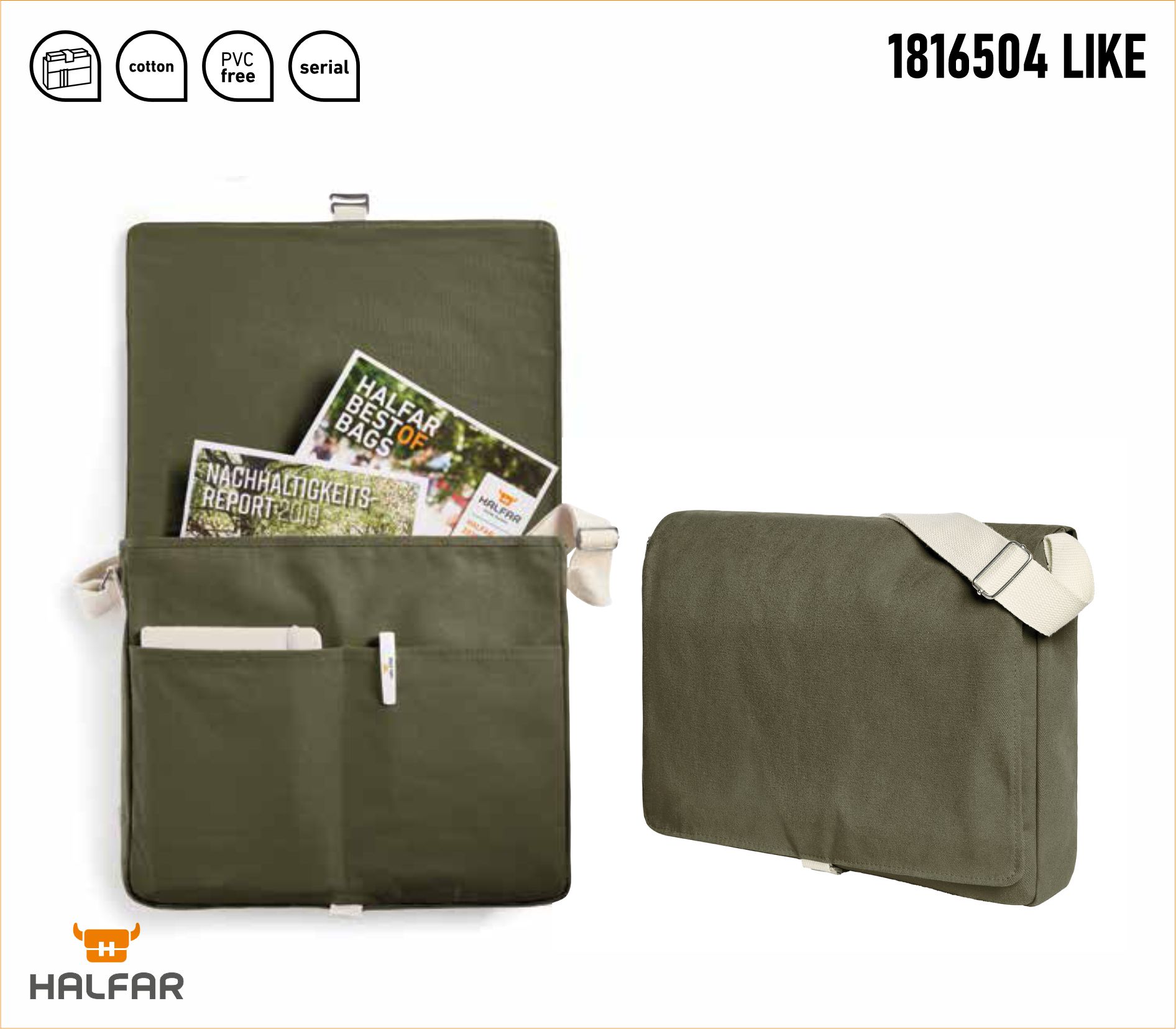 Polubisz tą bawełnianą torbę na ramię z dużą klapą. Waży zaledwie kilkaset gramów i oferuje wszystko, czego potrzebuje torba - dużo miejsca w dużej komorze głównej, która pomieści również dokumenty A4. Do tego dwie kieszenie ułatwiające organizację i szybki dostęp do najważniejszych przedmiotów codziennego użytku. Dzięki paskom w kolorze naturalnym torbę na ramię LIKE można nosić swobodnie na ramieniu. Można ją również wygodnie przymocować na ramieniu walizki. Piękne, przyciągające wzrok detale, takie jak metalowe akcesoria i zapięcie nadają tej niedrogiej torbie wysoką wartość. Materiał: bawełna 12OZ (340 g/m2) |