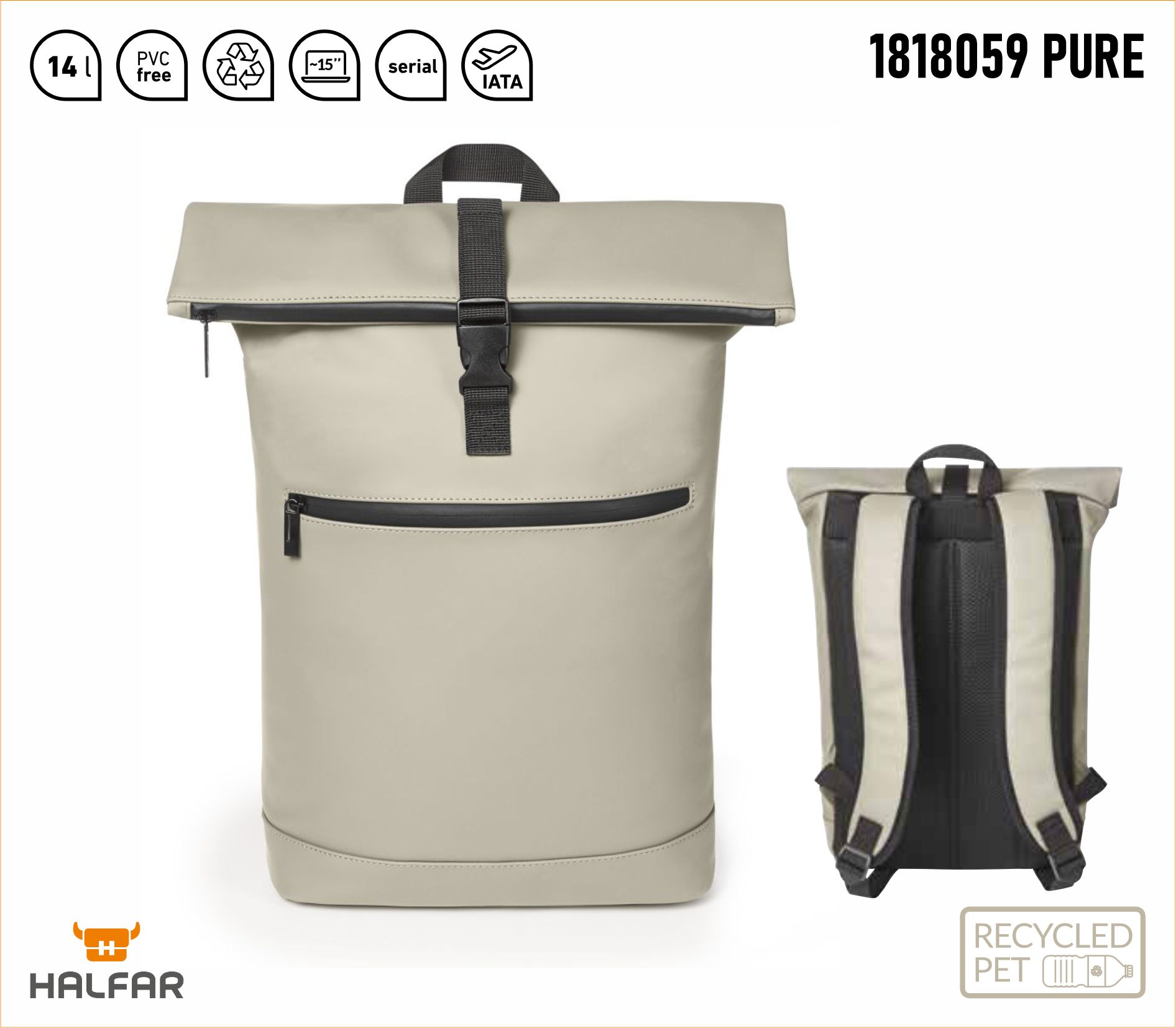 Nazwa mówi sama za siebie... Plecak na laptopa PURE zachwyca swoim minimalistycznym wyglądem – przynajmniej na pierwszy rzut oka. Projekt i materiał zewnętrzny sprawiają bardzo czyste i miejskie wrażenie. Modne kolory również mają swój wkład. PURE jest nie tylko piękny dla oka, ale także bardzo wygodny w użytkowaniu. Wynika to z efektu perełek, dzięki któremu materiał zewnętrzny z recyklingu przeciwstawia się prawie wszystkim warunkom pogodowym. Oczywiście zamki błyskawiczne są również wodoodporne. A dzięki wzmocnionej podstawie plecak na laptopa PURE jest niezwykle wytrzymały, a wyściełany system nośny zapewnia duży komfort.