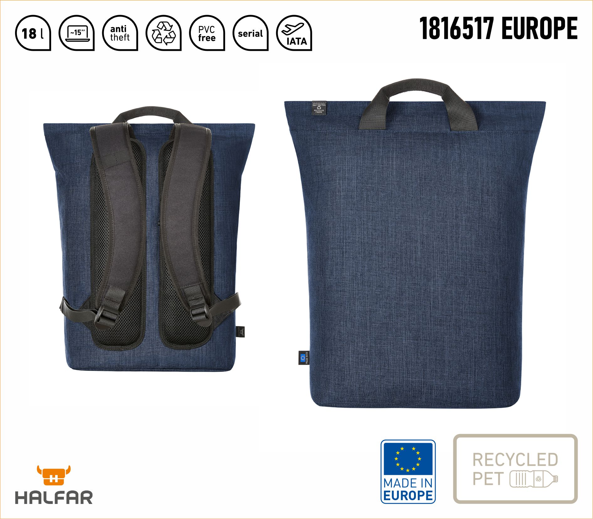 | Plecak na laptopa HALFAR® EUROPE 1816517 |